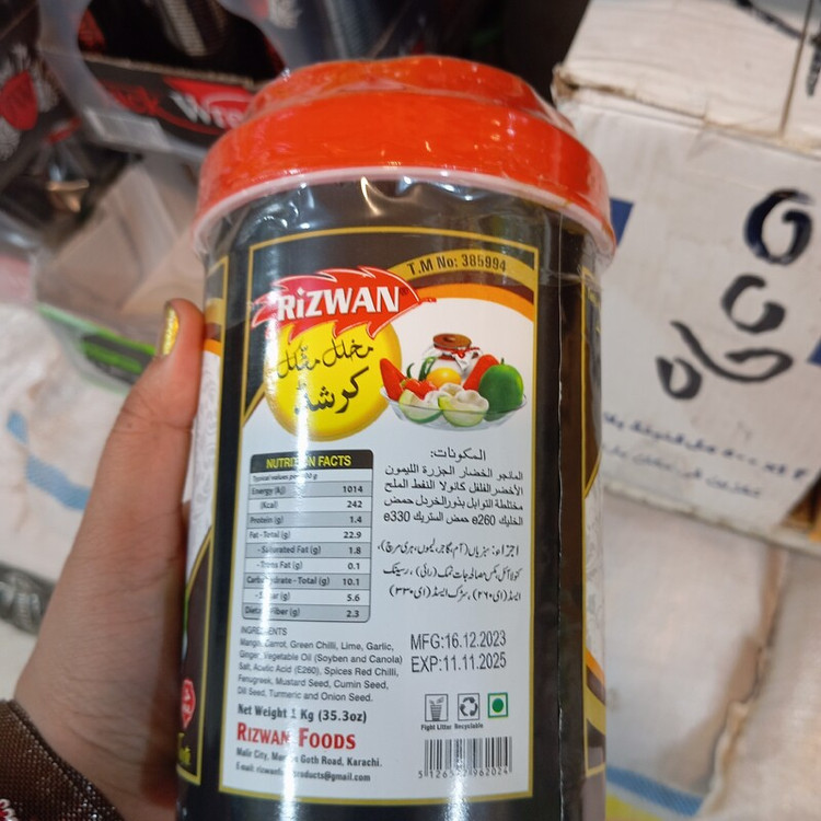 ترشی انبه برند رضوان روغنی لیته با طعمی تند و خوشمزه محصول پاکستان دارای نشان حلال با تاریخ انقضای بالا پلمپ و بهداشتی دارای ادویه های خاص ،لیمو،فلفل قرمز،انبه،فلفل سبز،سیر.....