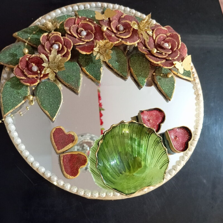 سینی حنا مناسب مراسم حنابندان با ماندگاری بالا و قیمت مناسب کفی آیینه مقاوم کاسه حنا بلوری تزیین شده قیمت مناسب